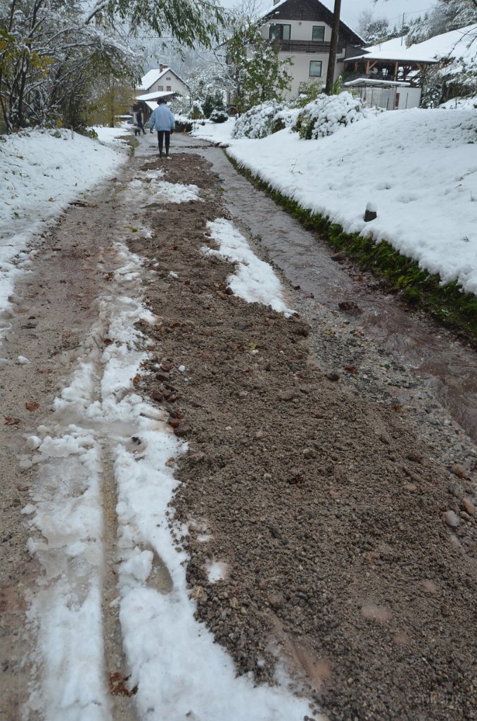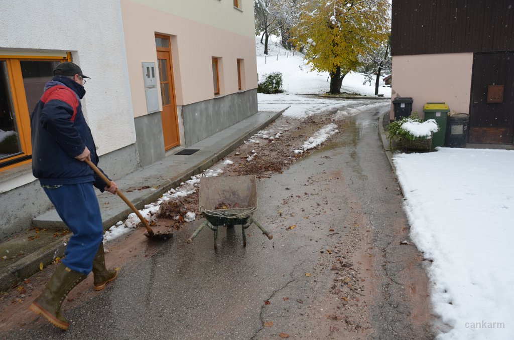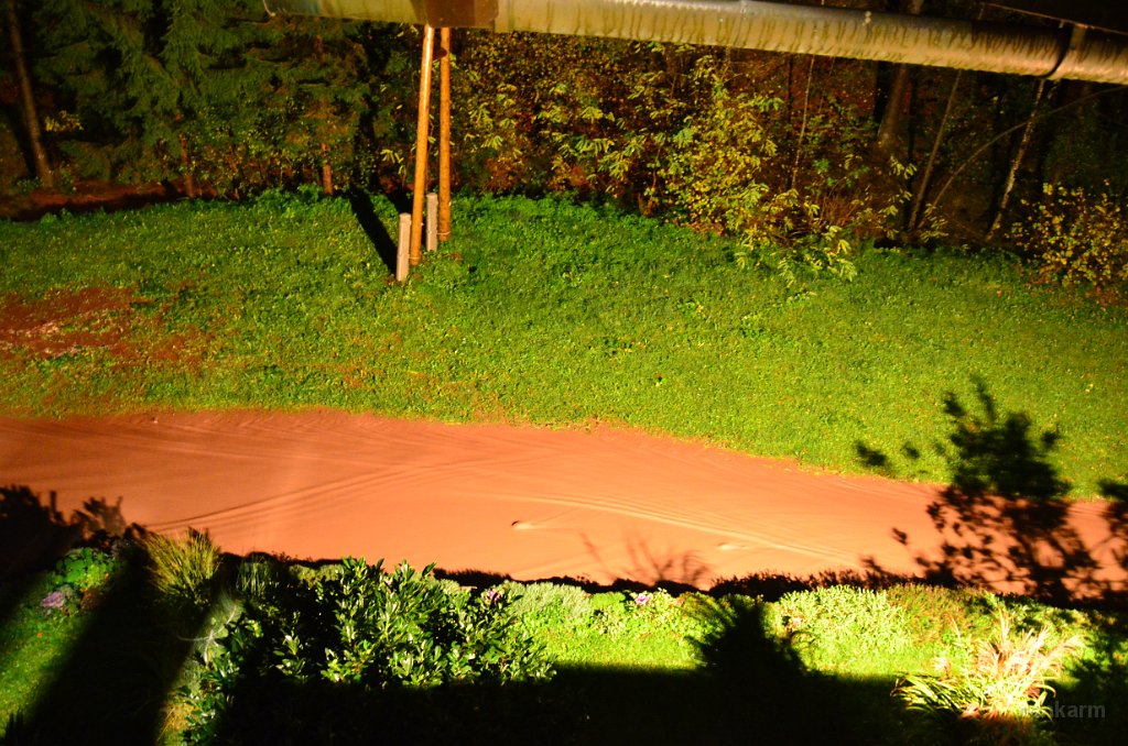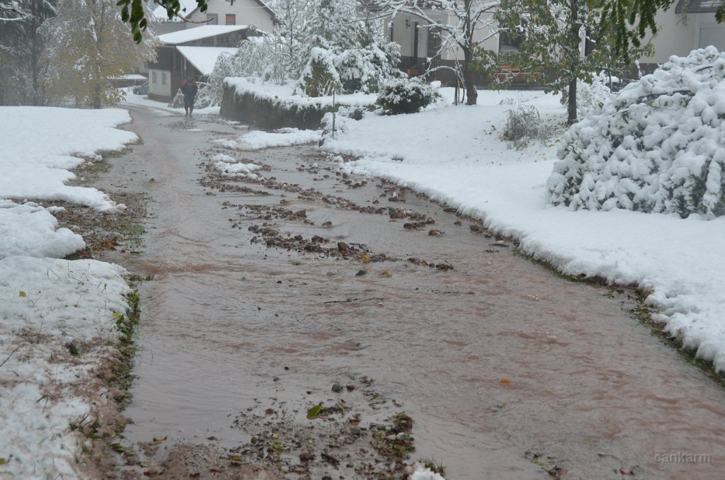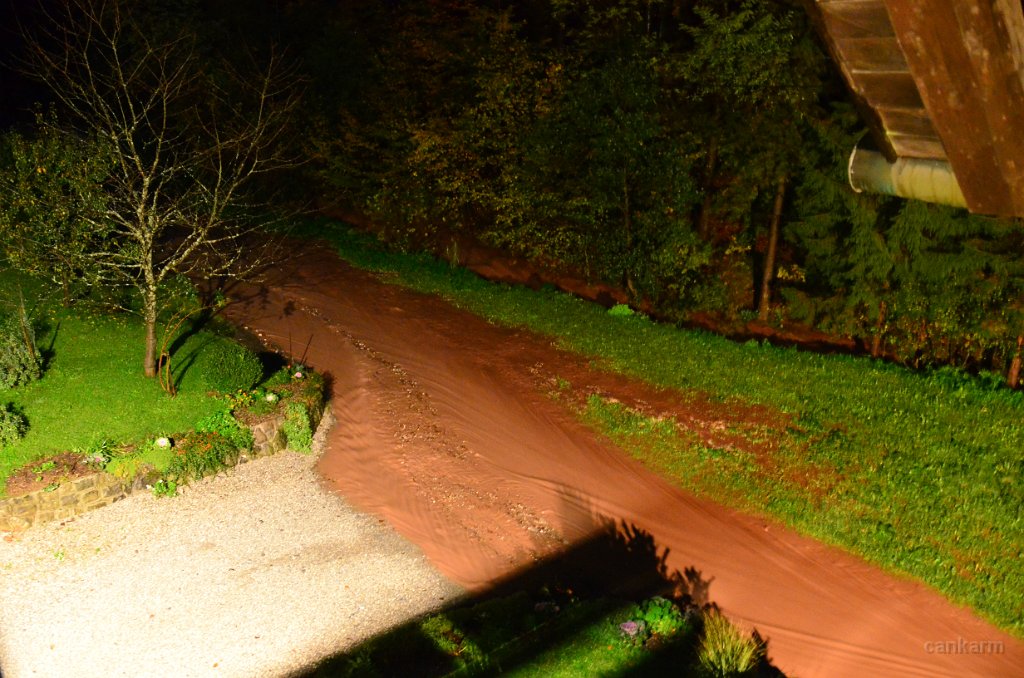 V noči 27-28 oktober, se je zamašil prepust pod cesto in ni dovolil iztekanje vode v strugo. Tako je velik del vode tekel po cesti.
