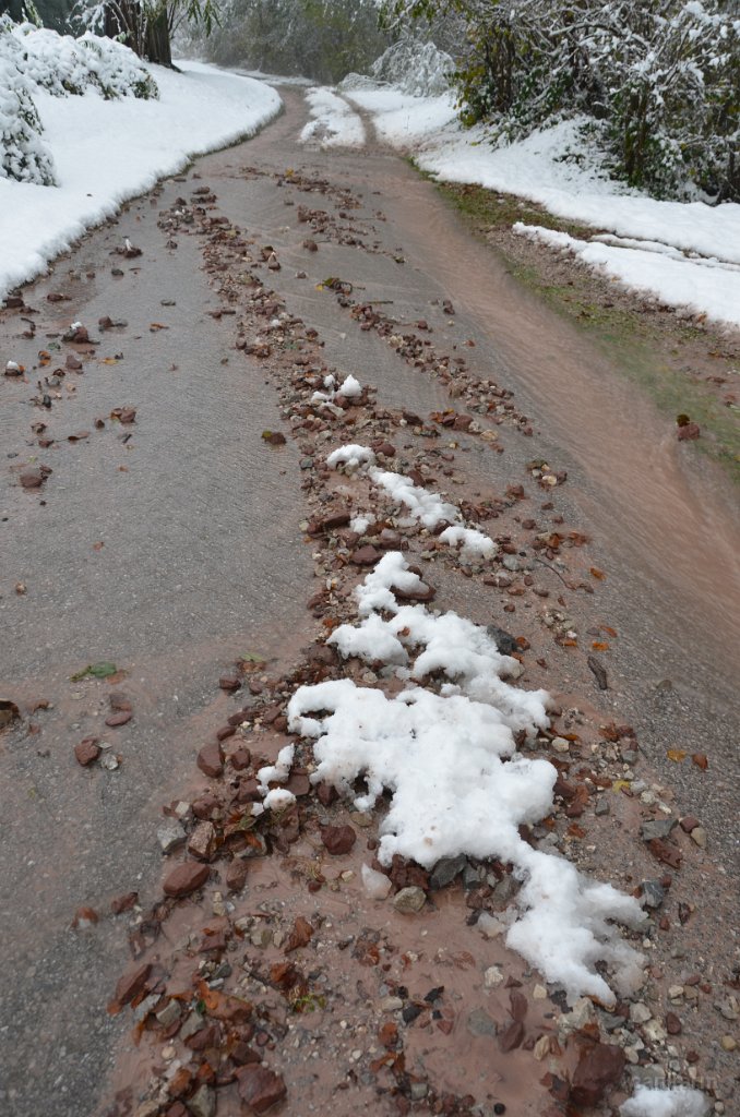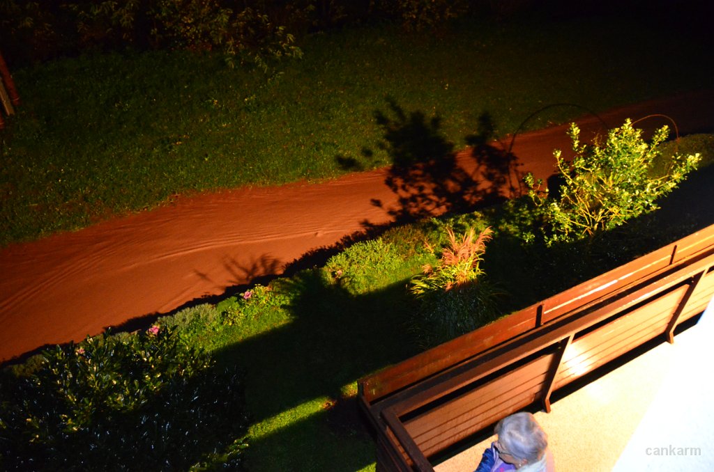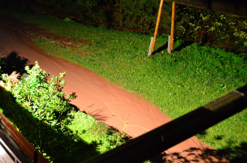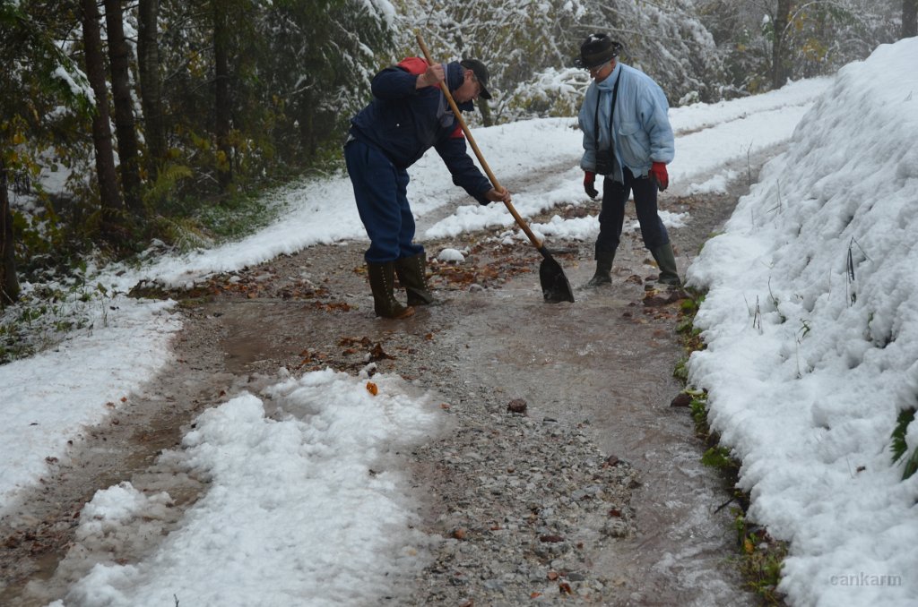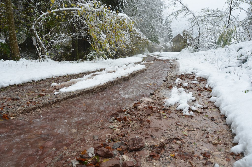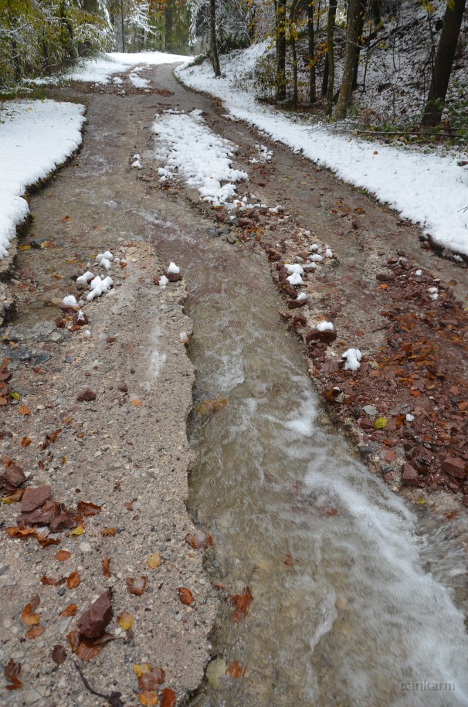 V noči 27-28 oktober, se je zamašil prepust pod cesto in ni dovolil iztekanje vode v strugo. Tako je velik del vode tekel po cesti.